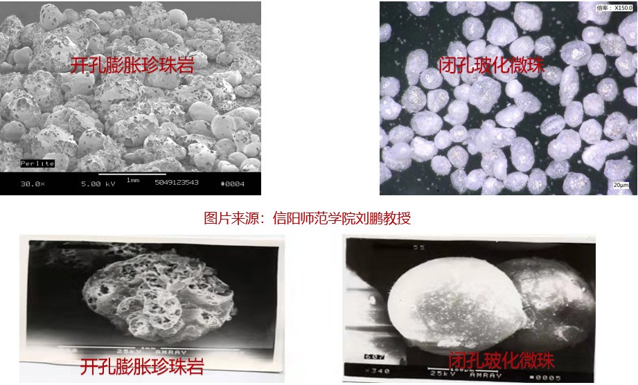 開孔珍珠巖和玻化微珠的微觀結(jié)構(gòu)對(duì)比